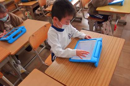デジタルドリル(Qubena)に取り組む1年生です。