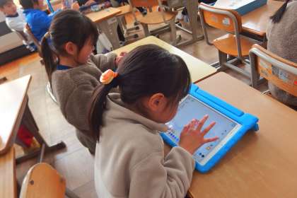 デジタルドリル(Qubena)に取り組む1年生です。