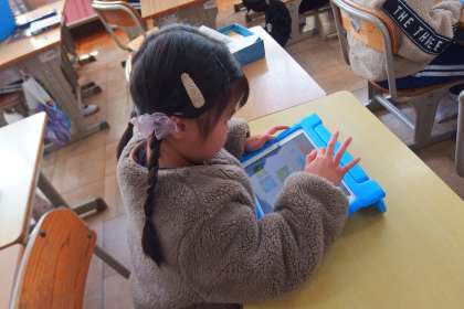 1年生がタブレットを使ってプログラミングを学習しました。