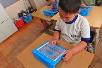 1年生がタブレットを使ってプログラミングを学習しました。