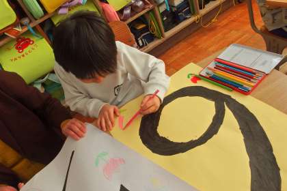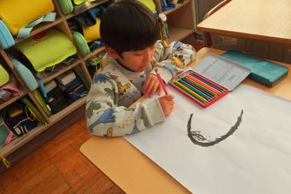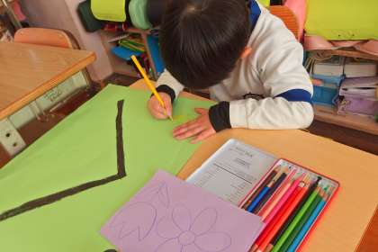 6年生を送る会の準備をしていてる1年生です。