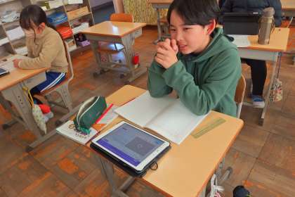 算数の教科書に載っているプログラミングのアプリを使った学習単元に取り組んでいる5年生です。