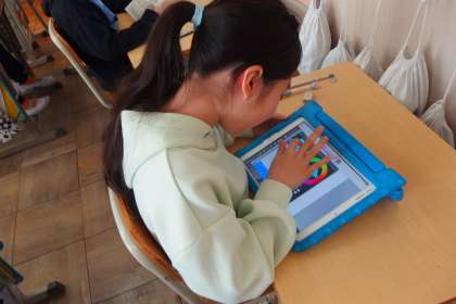 タブレットのアプリで復習をしている3年生です。
