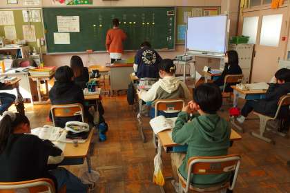 5年生の国語の授業です。 スクリーンに映っているのはデジタル教科書です。