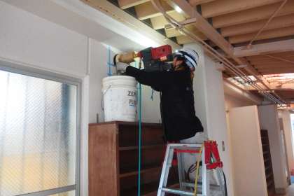 体育館のエアコン設置工事が再開しました。