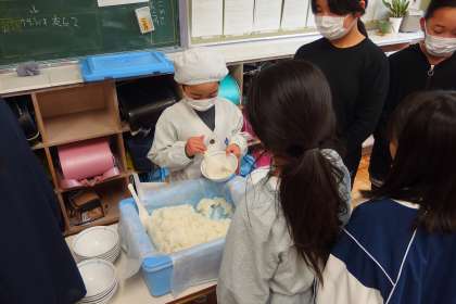 給食の配膳の様子です。