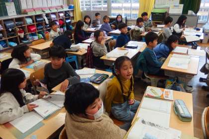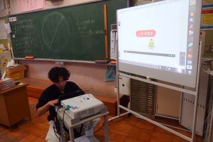 2年生の算数の授業です。 スクリーンに映っているのはデジタル教科書です。