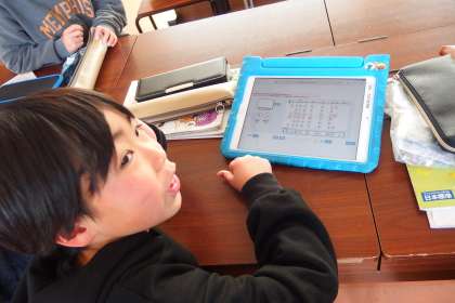 4年生の音楽の授業です。 タブレットでもリコーダーの慣熟練習ができるようです。