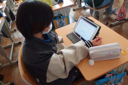 タブレットのアプリで復習をしているところです。