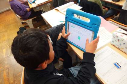 デジタルドリル(Qubena)に取り組む2年生です。