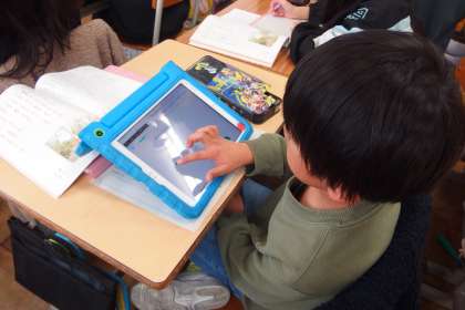 デジタルドリル(Qubena)に取り組む2年生です。