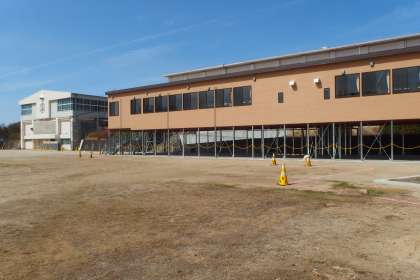 校舎増築工事の現場を囲んでいたフェンスが撤去されて、工事がほぼ完了しているようです。