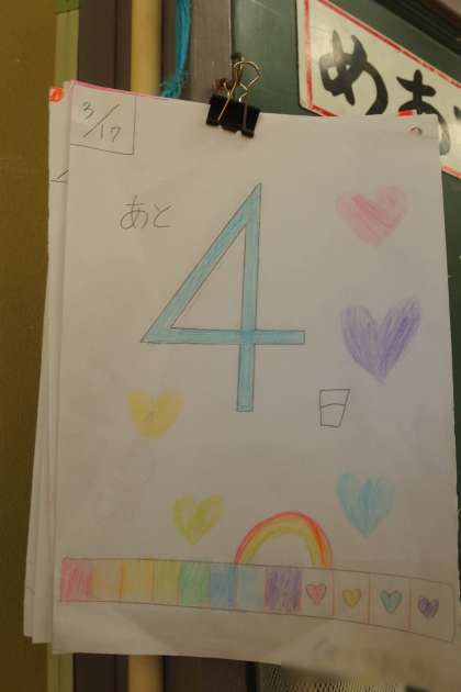 2年生の教室には、残り登校日数のカウントダウンカレンダーがありました。