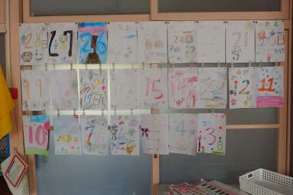 2年生の教室に並んでいるカウントダウンカレンダーです。