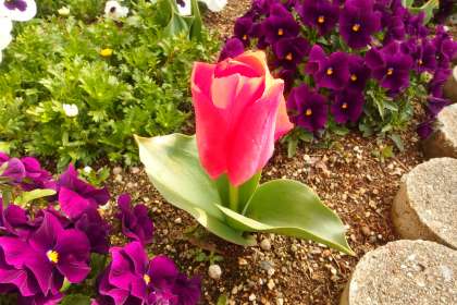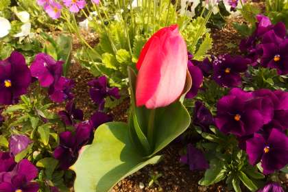 花壇に植えられているチューリップは、いくつか花が咲き始めました。
