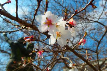 四季桜が花を咲かせています。 タブレットで撮影しました。