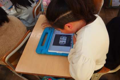 タブレットのアプリで復習をしている2年生です。