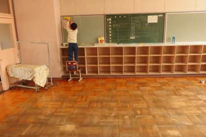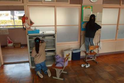 教室移動の様子です。 そうじや片付けも同時に進めています。