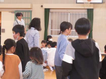 第1回通学団会 公開日 2025/04/14 更新日 2025/04/14 お知らせ 今年度最初の通学団会を行いました。6年生は一番に体育館に来て、通学団の場所に分かれて活動内容を確認していました。他の学年が来ると、「こっちだよ」と声をかけたり、1年生を見つけていっしょに通学団の場所に移動したりと、ここでも「自ら考える」姿があふれていました。