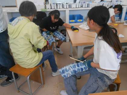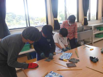 5・6年クラブ活動 竹細工 公開日 2025/05/16 更新日 2025/05/16 お知らせ 石野交流館の竹細工クラブの方が講師となり、竹細工に取り組んでいます。今日は、箸づくりに挑戦。竹を削るときの力加減に苦戦していましたが、各グループについてくださる講師の方のおかげで、世界に一つだけのオリジナル箸を完成することができました。