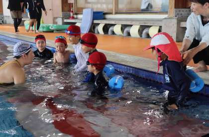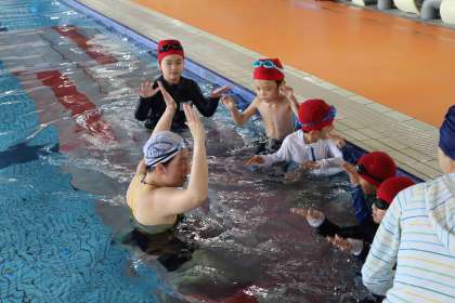 水に慣れる活動をみんなで楽しみました。