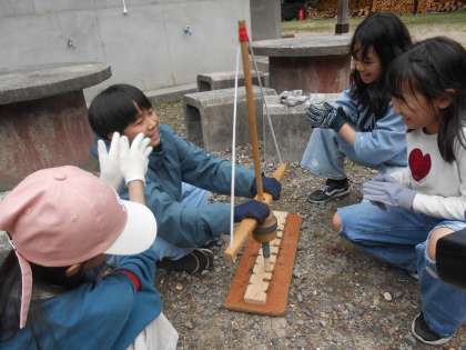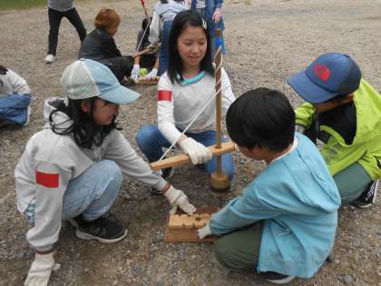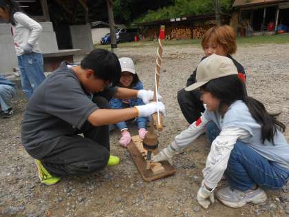 ひもの力を使って棒を回す力加減が難しかったようです。
