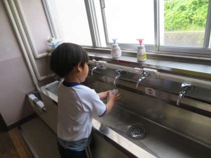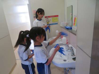 そうじは、縦割り活動のファミリー班で行っています。高学年を中心に、そうじ場所や役割分担を決めてくれています。6月からの新しい場所でのそうじですが、あいさつの後、低学年の子も手際よく、自分の分担をそうじしていました。