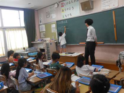 6月 授業参観 公開日 2025/06/16 更新日 2025/06/16 お知らせ 算数の学習です。 1年生は、形の模型を使って、いろいろな形について学習しました。 2年生は、文章問題から、引き算を使って答えを求めることを確認した後、繰り下がりのひっ算の方法を学びました。 3年生は、3年生一人一人が好きな遊びを、集計したり表にしたりする方法を学びました。