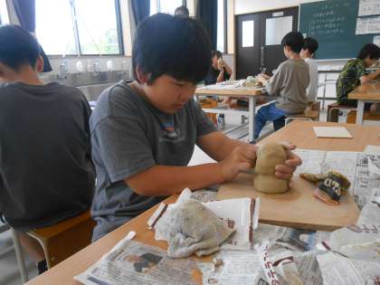 6年図工 シーサー作り 公開日 2025/06/17 更新日 2025/06/17 お知らせ 一人一人がオリジナルのシーサーを作っています。口の開け方やたてがみの形など、どんなふうにしようか、みんな真剣です。