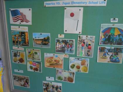 子ども達が興味津々で見に行くと、日本とアメリカの学校の様子を比べた内容でした。