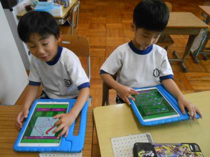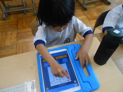 学習用タブレットの漢字練習アプリを使うことで、自分のペースで集中して学習しています。