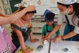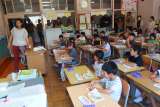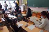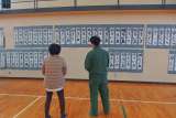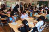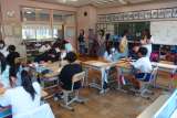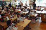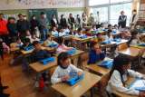 体育館に展示している書き初め大会の作品を鑑賞しに来ていた保護者の方です。 書き初...