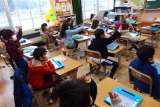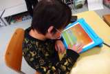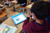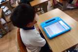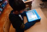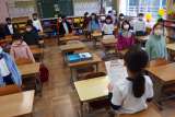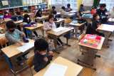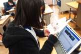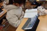 1年生の算数の授業です。 タブレットを使った学習の方法を担任の先生から聞いている...