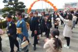 学校の正門の前、廣済寺の敷地に咲いている桜です。 ソメイヨシノではないようです。...