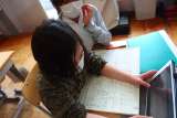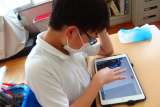 3年生の書写の授業です。 書写ボランティアさんにサポートしていただきました。