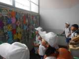 1年生の図工の作品を見て、3年生や4年生が「かわいい」「きれい」「いろいろな形が...
