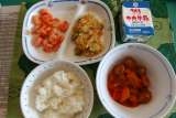 今日の学校の給食のメニューです。 修学旅行の6年生のお昼ごはんはカツカレーでした...