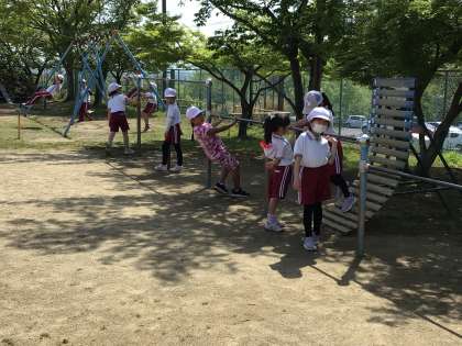 「だるまさんが転んだ」は終わっていて残念でしたが、2年生の子どもたちがドッジボールや遊具で元気よく遊んでいました。