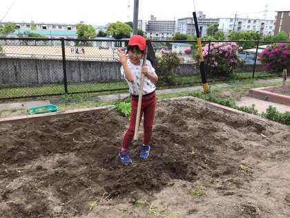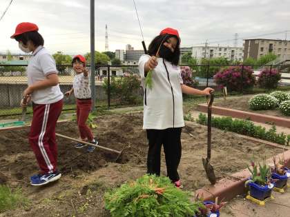 8組さんが何やら収穫したようです。 近づいてみたら、にんじんでした。きっと甘くて美味しいよ。