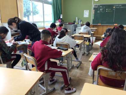 4月26日 算数 6年生 公開日 2023/04/26 更新日 2023/04/26 校長室から 6年生は「点対象」になるように図形を描いていました。 さすが6年生です。定規の使い方が上手でした。そして困っている子にやさしくヒントを出していました。