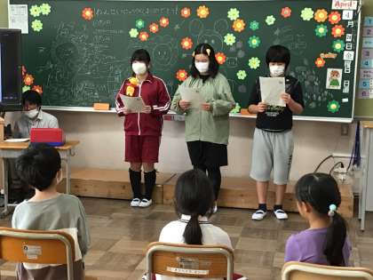 6年生が中心になり、今日は歓迎会を開きました。とても上手な司会です。
