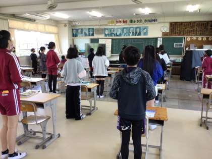 6年生の発声練習は、本当によく声が出ていました。楽しく歌うことができています。