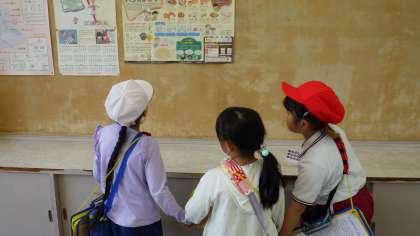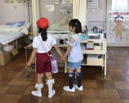 1年生の子に学校のことを教えてあげました。
