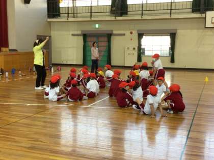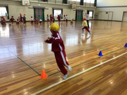 「用意、どん」で走って向こう側まで行き、回って自分のチームまで戻り、次の子と交代します。