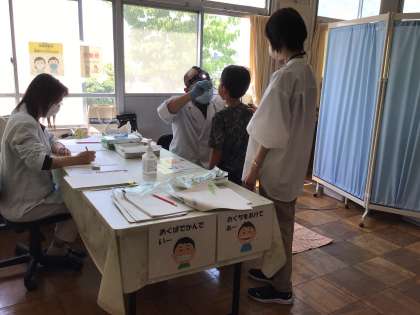 3年生の歯科検診の様子です。 廊下で待っているときも、静かに待っていました。