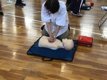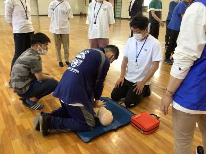 子どもたちが帰った後、先生たちは救急救命講習を受けました。
