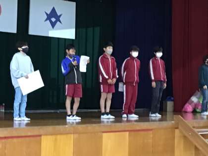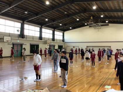 体育館をのぞくと6年生がリハーサルをしていました。