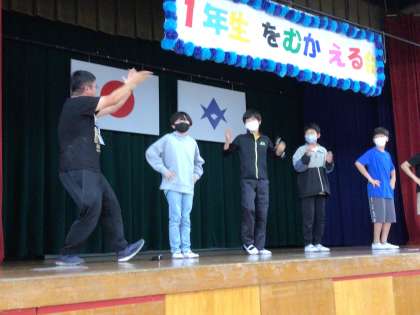 爆弾ゲームの音楽の間、舞台上の係の6年生は、ダンスで盛り上げてくれました。