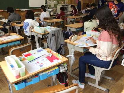 家族の様子を描いていました。 お父さん、家族全員など描いている絵は様々でした。
