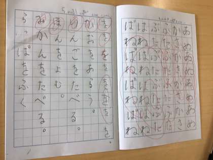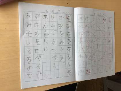今日は「を」の学習をしました。